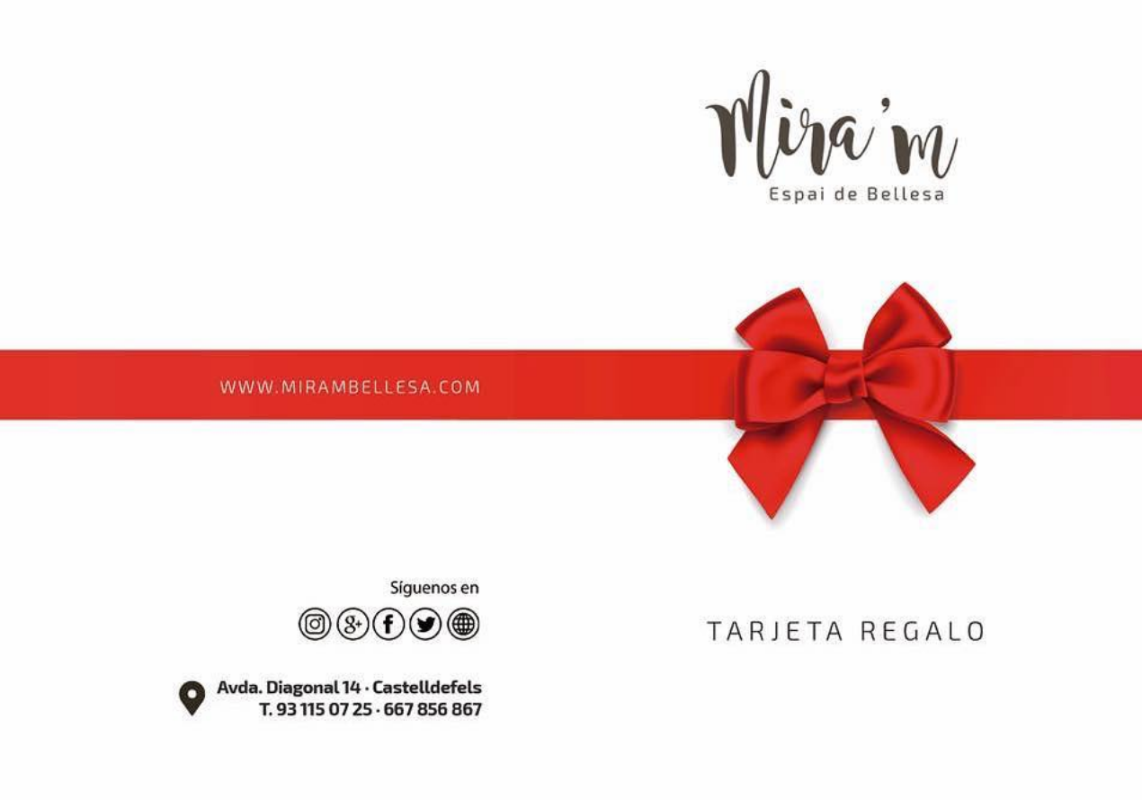 Sorprende a tus seres queridos con una experiencia única de relajación y cuidado personal en Mira’m Espai de Bellesa. Nuestra tarjeta regalo es el obsequio perfecto para cualquier ocasión: cumpleaños, aniversarios, días festivos o simplemente para demostrar tu aprecio.